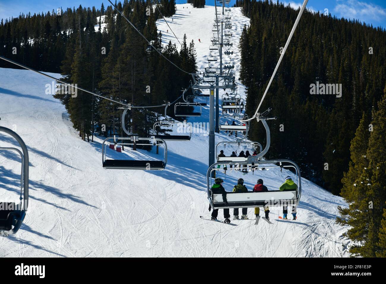 Ski Chair Lift At Breckenridge Ski Resort In Winter Time With Snow In The Colorado Rocky Mountains Stock Photo Alamy